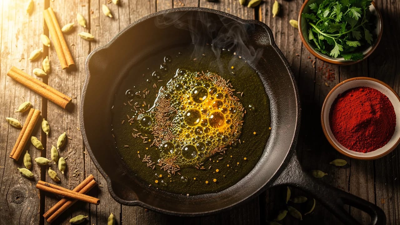 This is the single most important window, and the one most home cooks skip. Your pan is hot, your oil or butter is shimmering, and you add aromatics and whole spices. This is where blooming happens.