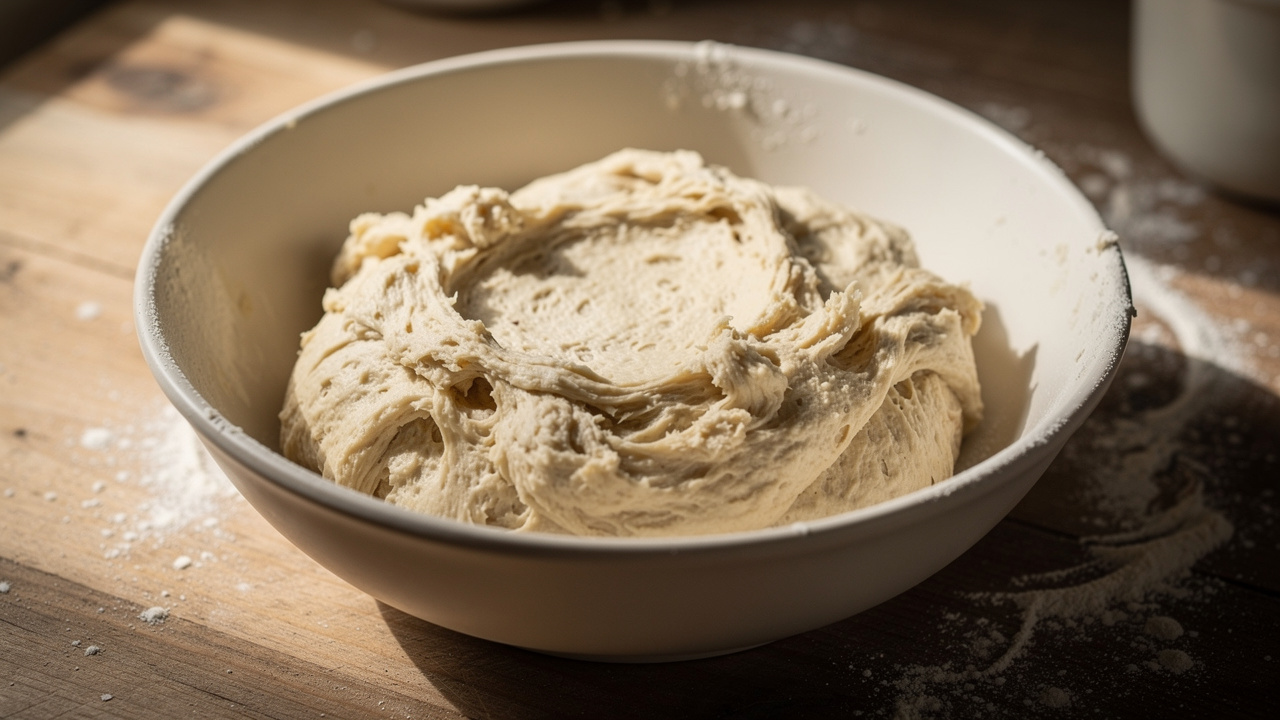 A bread-making technique where flour and water are mixed and rested before adding salt and leavening, allowing gluten to develop naturally.